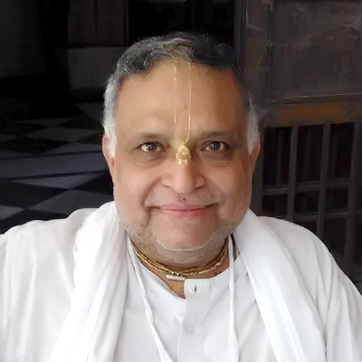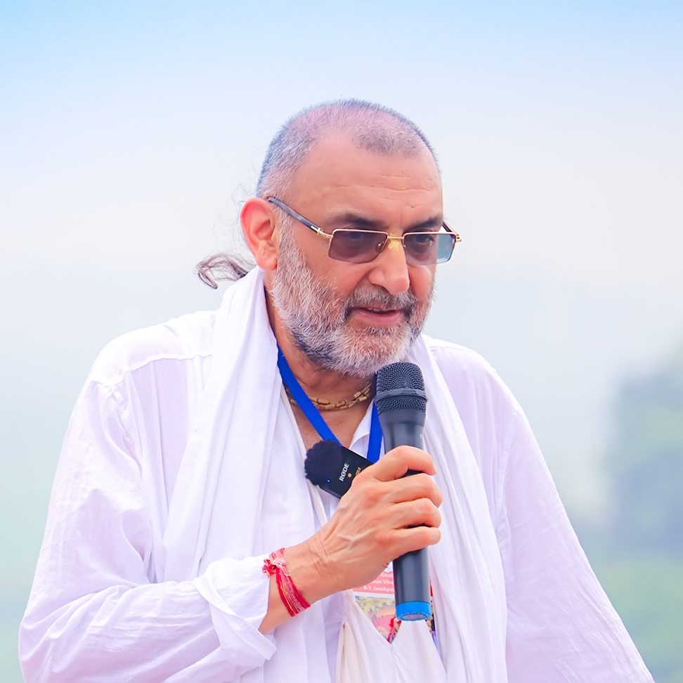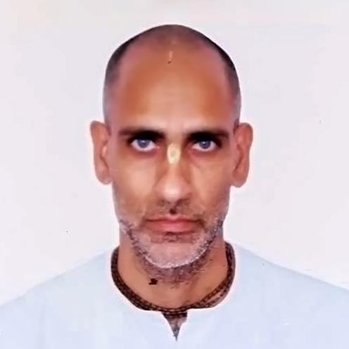Sripad BV Vana Maharaj is the President of the International Goudiya Vedanta Trust (IGVT). Born in 1959 in Midnapura, West Bengal, near Pichalda, he developed deep devotion to Sri Caitanya Mahaprabhu from childhood. Inspired by senior Vaishnavas, he dedicated his life to Gaudiya Vaishnava philosophy and has served under Srila BV Narayana Gosvami Maharaj since 1982, preaching worldwide with humility and dedication.